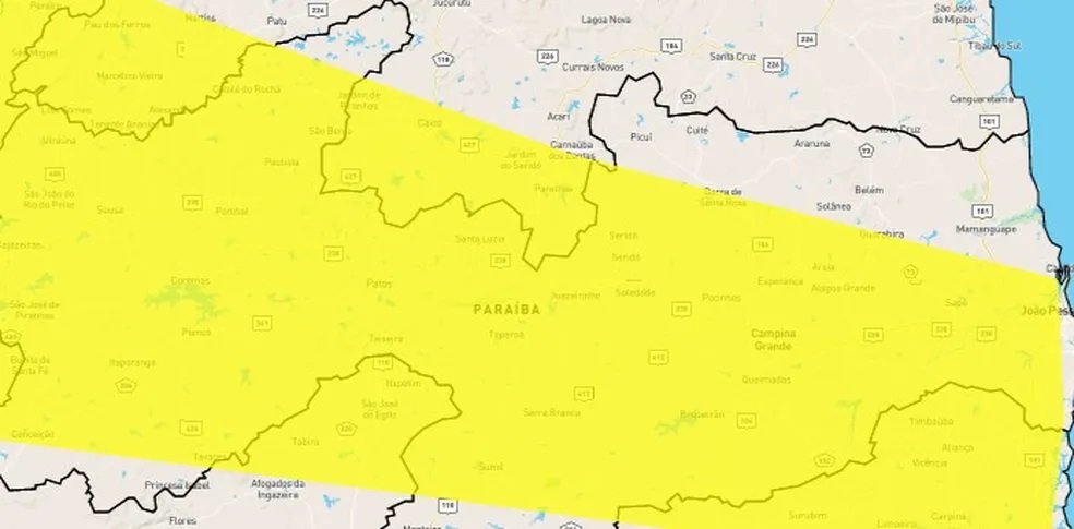 Inmet emite dois alertas de perigo de chuvas intensas para Patos mais de 190 cidades da Paraíba