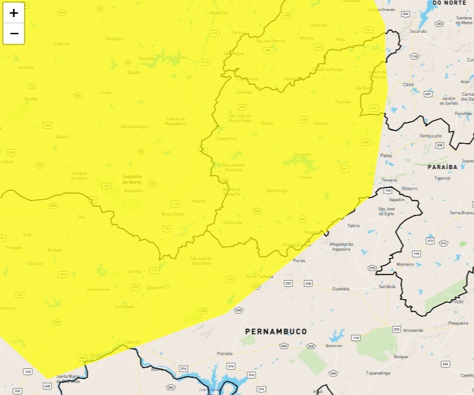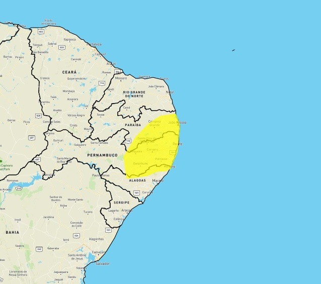 Conforme previsão do instituto, podem ocorrer na Paraíba chuvas com volumes entre 20 e 30 mm por hora ou de até 50 mm por dia