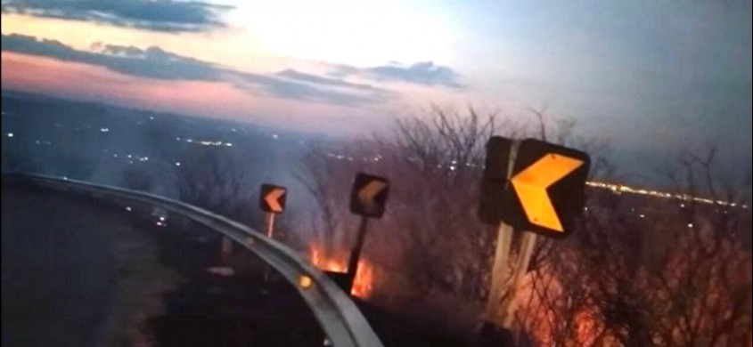 O combate ao fogo está sendo realizado com ajuda de máquinas e com auxílio de água por parte do corpo de bombeiros.
