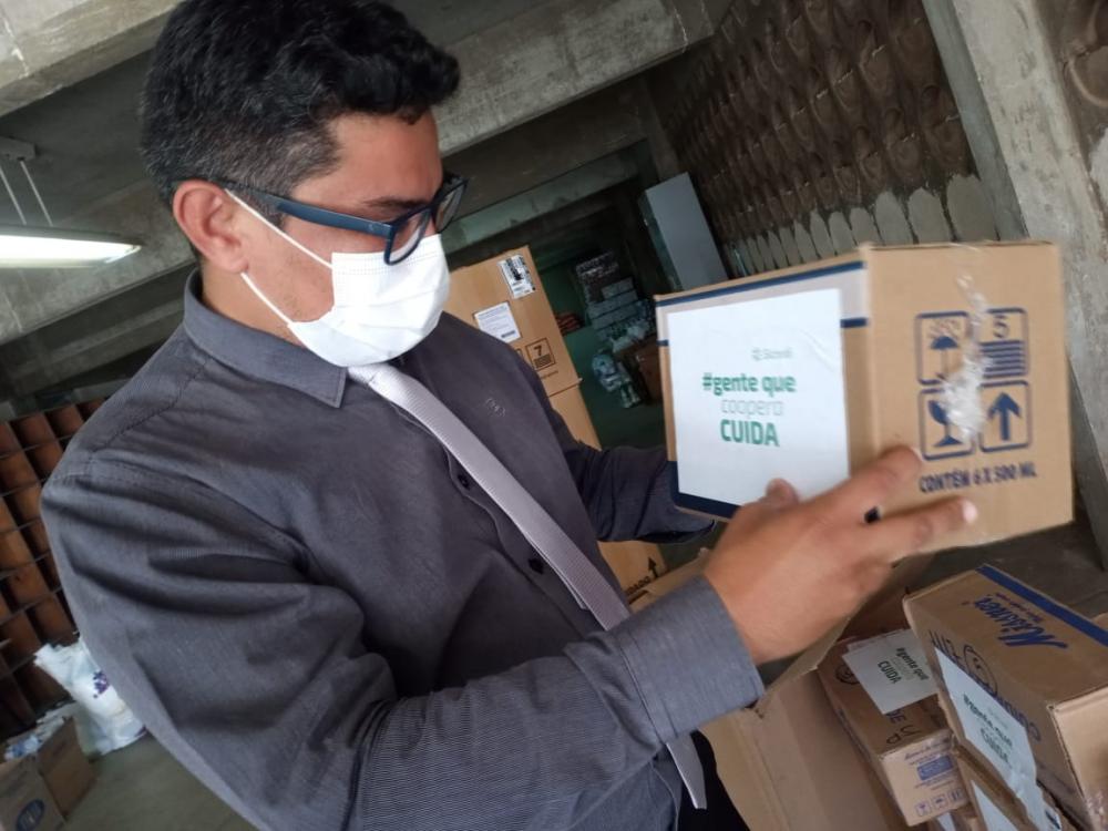 O município recebeu nova doação de 50 cestas básicas, aventais, EPIs, máscaras de proteção facial, álcool em gel e líquido, dentre outros materiais