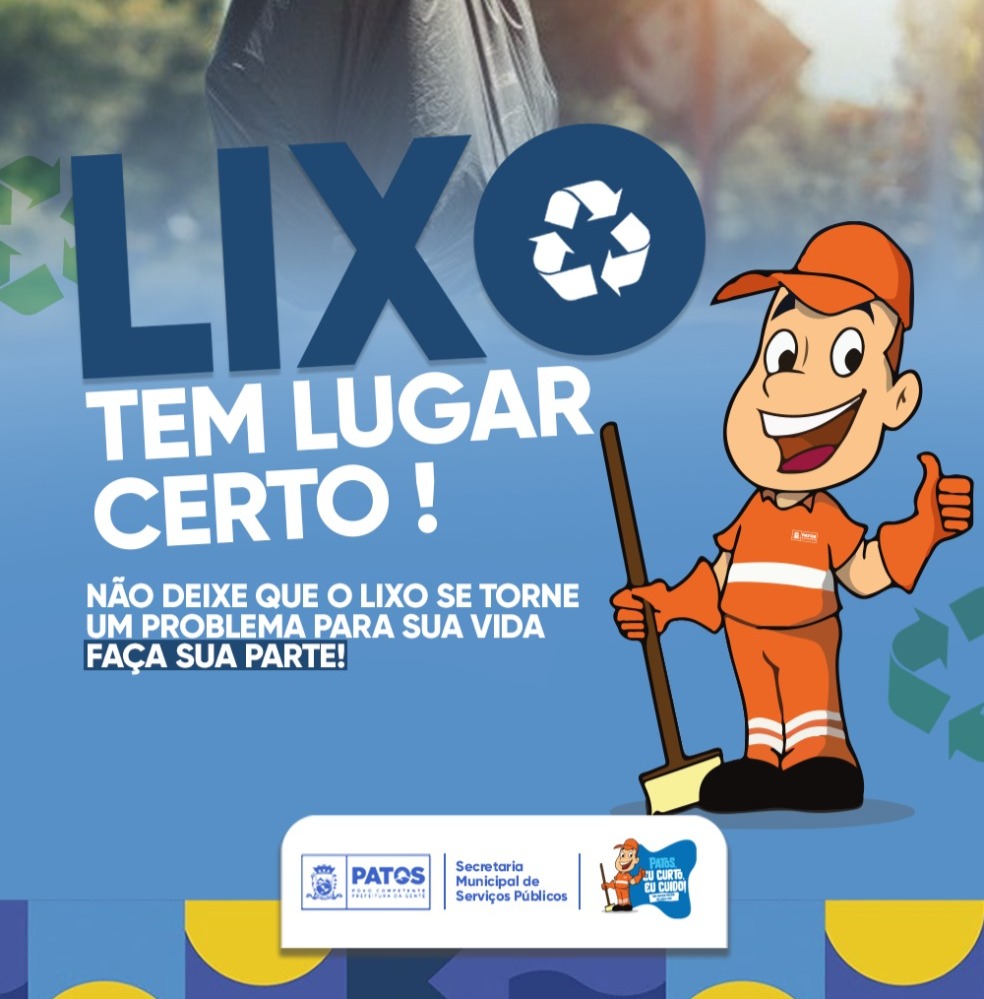 LIXO TEM LUGAR CERTO! Prefeitura de Patos reforça pedido sobre descarte regular de lixo. Confira cronograma da coleta