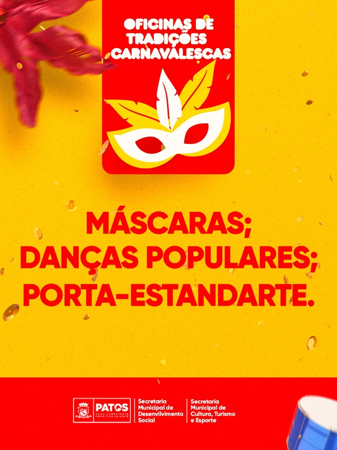 Prefeitura de Patos abre inscrições para oficinas de tradições carnavalescas