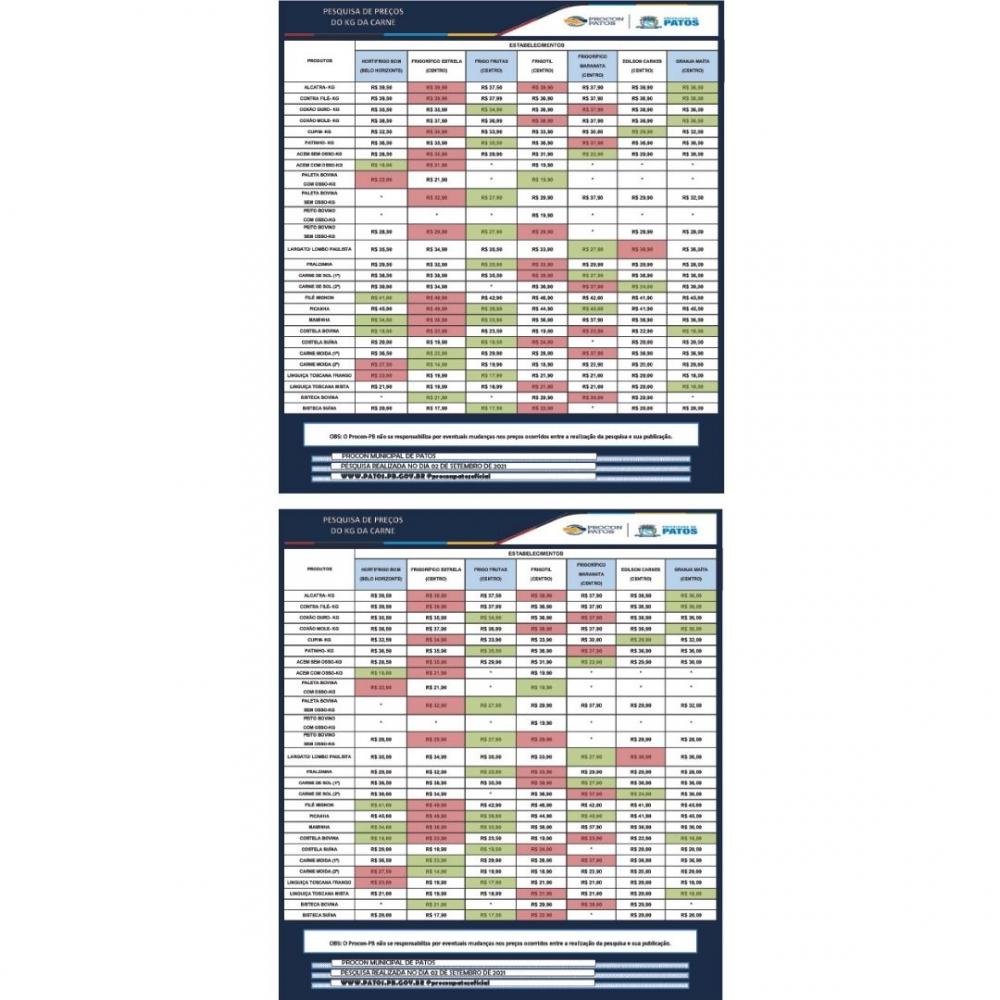 PROCON Patos divulga mais uma pesquisa de preço do quilo da carne