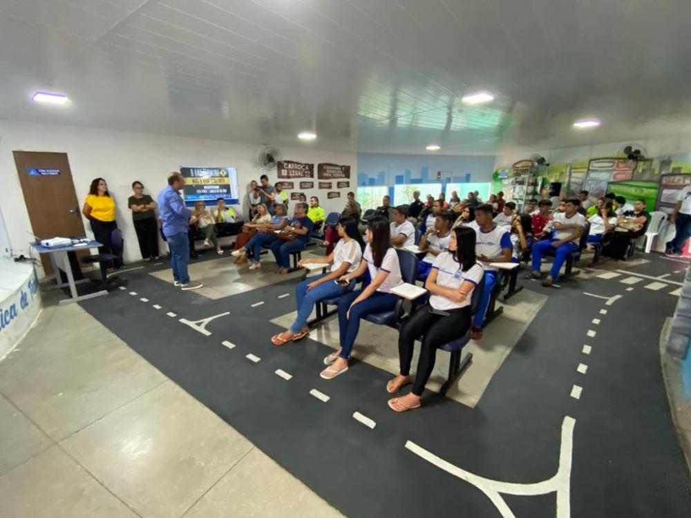 O momento contou com a participação de representantes da CPTRAN, DETRAN, PRF, da secretária de educação do município, Adriana Carneiro, professores e alunos da rede municipal de ensino.