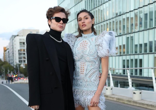 Com vestido imponente, Sasha participa do desfile da Balmain em Paris ao lado de João Figueiredo