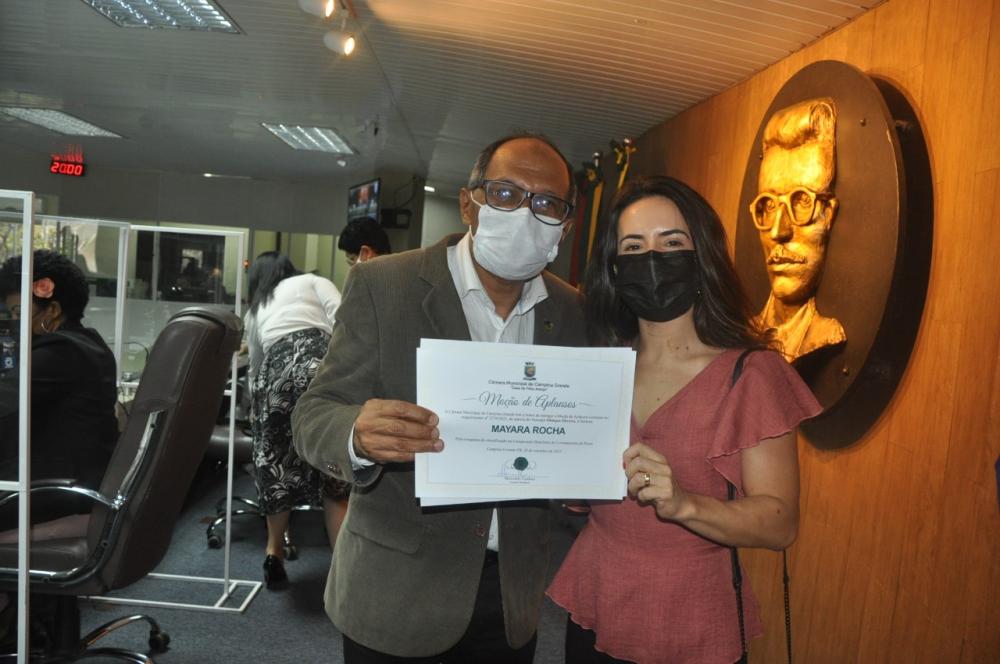 Mayara compareceu à sessão na Câmara para receber as honrarias e agradeceu aos dois parlamentares, ao presidente da Casa, Marinaldo Cardoso, e aos demais vereadores que votaram a favor das homenagens.