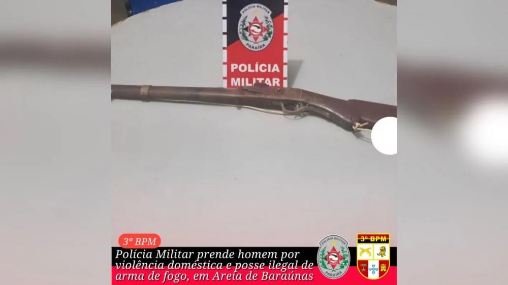 Polícia Militar prende homem em flagrante por violência doméstica e posse ilegal de arma de fogo, em Areia de Baraúnas