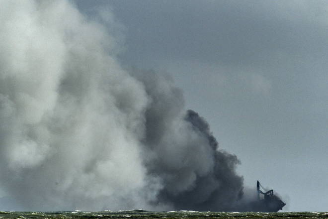 O navio arde em chamas desde 20 de maio com uma carga de 1,5 mil contêineres carregados com 25 toneladas de ácido nítrico e etanol, entre outros materiais