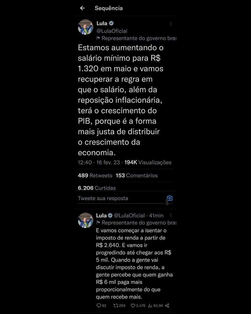 Durante a campanha eleitoral, Lula chegou a prometer ampliar, ao longo de seu governo, para R$ 5 mil a faixa de isenção. Em uma reunião com centrais sindicais, em janeiro deste ano, o petista reiterou a ideia e enfatizou que, no Brasil, “quem ganha muito paga pouco”.