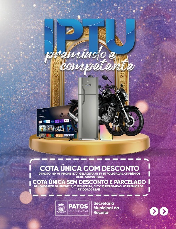 A Prefeitura de Patos lançará, oficialmente, na próxima segunda-feira, dia 06 de março, a campanha IPTU Premiado 2023.