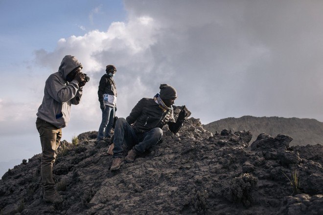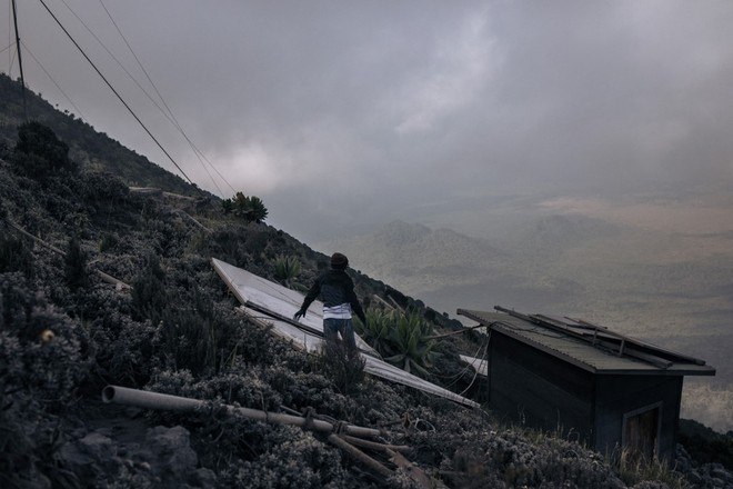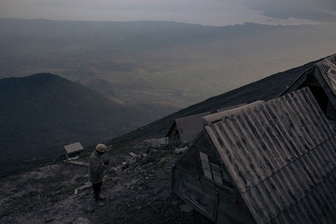 Um brilho vermelho também apareceu ao longe ao norte: o segundo vulcão do local, Nyamuragira, está ativo. A equipe, que também inclui sete carregadores e dois cozinheiros, precisou dormir em pequenas cabanas para turistas, localizadas na borda da cratera