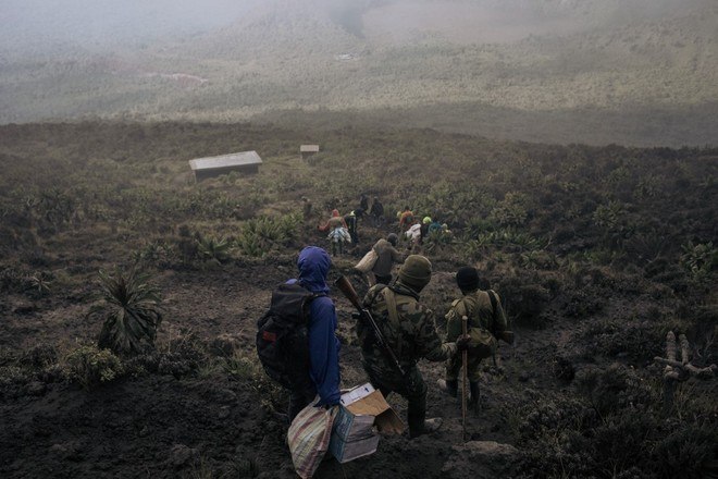 Depois de sair do Observatório do Vulcão Goma (OVG), na madrugada de sexta-feira, quatro especialistas se dirigiram ao vulcão, localizado ao norte da cidade, protegidos por uma dezena de guardas-florestais armados do Parque Nacional de Virunga