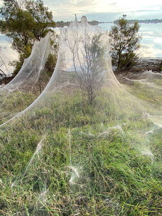 Moradores da região de Gippsland, no estado de Victoria, no sudoeste da Austrália, foram surpreendidos por enormes teias de aranha que se formaram após dias de intensa chuva. Em certa área, a teia chegou a cobrir mais de um quilômetro ao longo de uma estrada