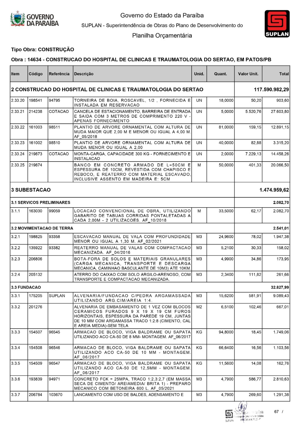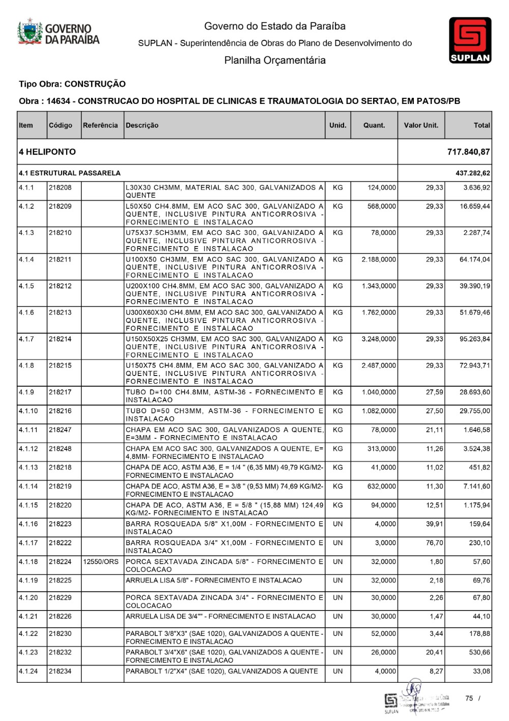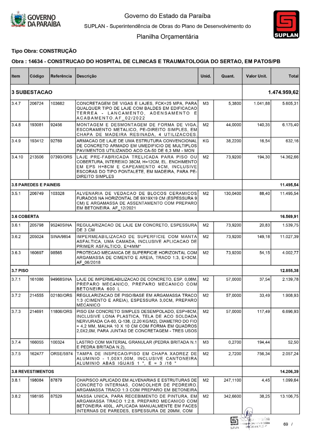 O Governo da Paraíba, por meio da Superintendência de Obras do Plano de Desenvolvimento do Estado (Suplan), publicou, neste mês de dezembro, o edital de licitação para a construção do Hospital de Clínicas e Traumatologia do Sertão, em Patos. A Concorrência 032/2023 acontece na Sede da Suplan, às 10h, no próximo dia 11 de janeiro. A edificação terá uma área de construção de 21.500,00m² e será contemplada com Urgência e Emergência, Ambulatório, Centro de Imagem, Centro Cirúrgico, Ambulatorial e Geral, Unidade de Terapia Intensiva Adulto, assim como outros serviços, e contará com 230 leitos. Serão investidos cerca de R$ 130 milhões para as obras da unidade de saúde.