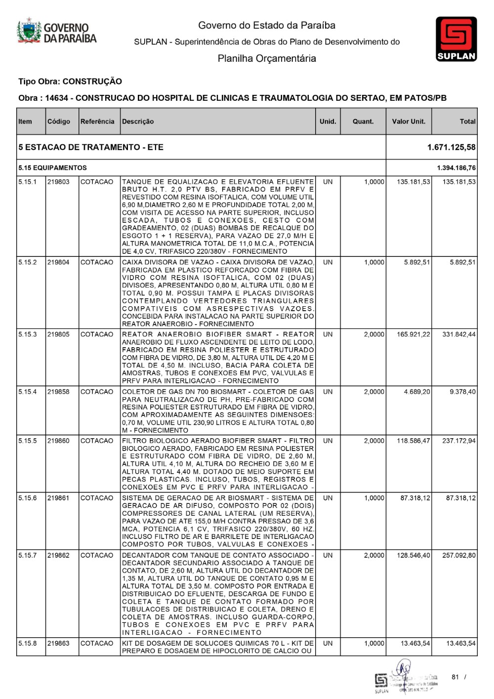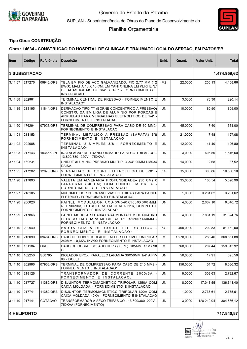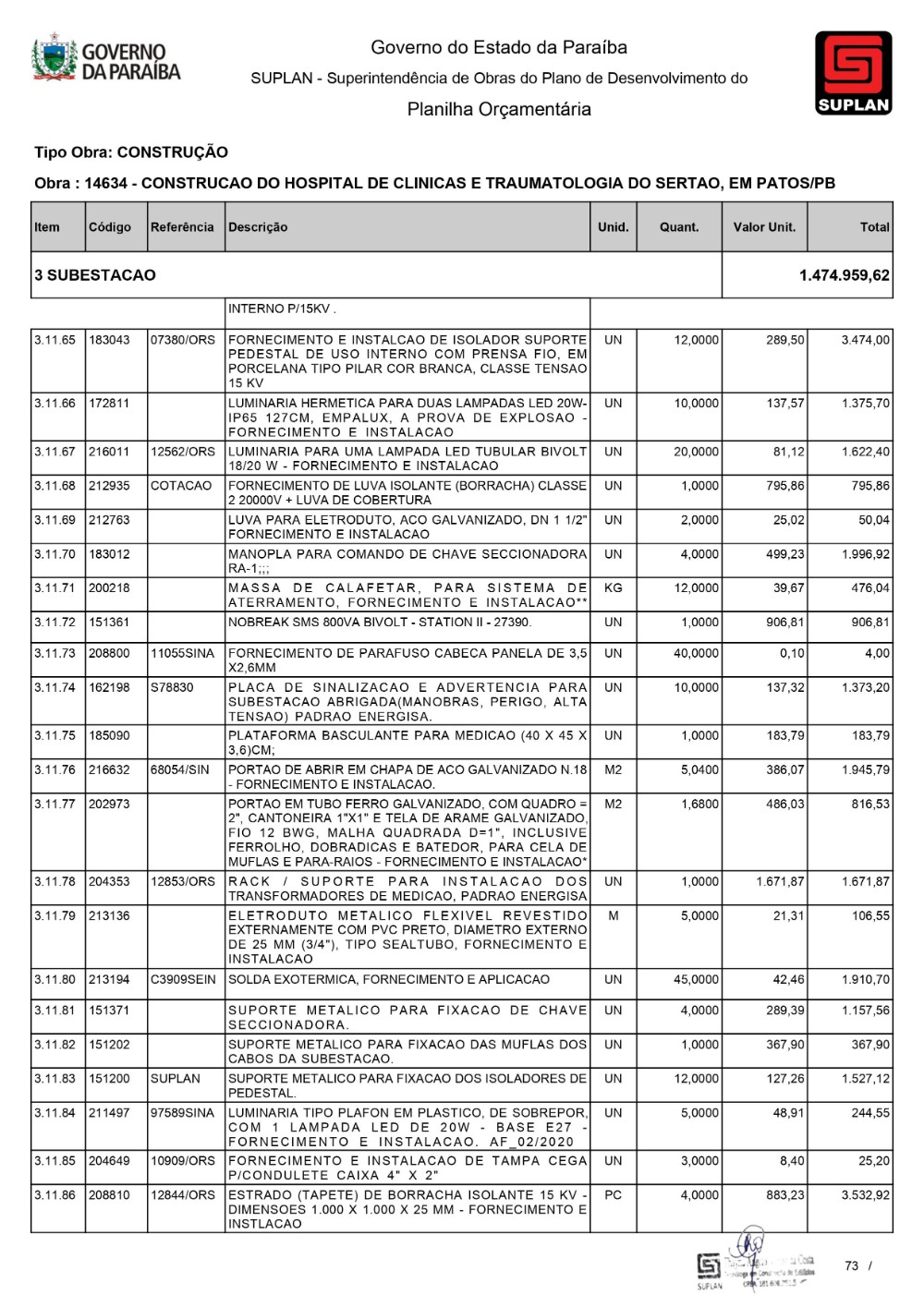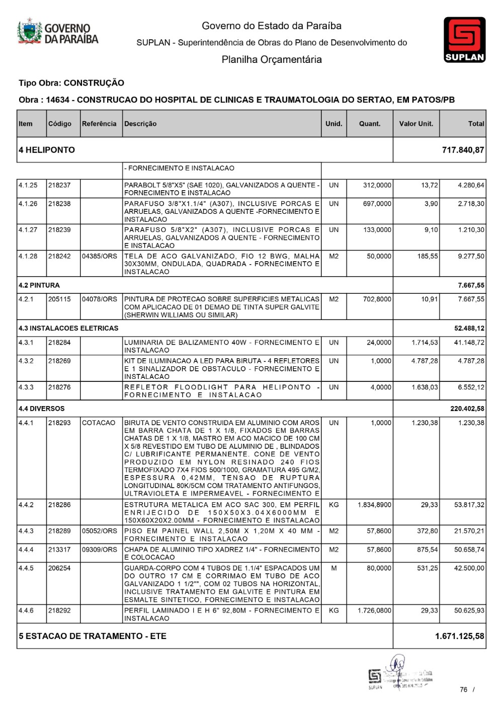 O Governo da Paraíba, por meio da Superintendência de Obras do Plano de Desenvolvimento do Estado (Suplan), publicou, neste mês de dezembro, o edital de licitação para a construção do Hospital de Clínicas e Traumatologia do Sertão, em Patos. A Concorrência 032/2023 acontece na Sede da Suplan, às 10h, no próximo dia 11 de janeiro. A edificação terá uma área de construção de 21.500,00m² e será contemplada com Urgência e Emergência, Ambulatório, Centro de Imagem, Centro Cirúrgico, Ambulatorial e Geral, Unidade de Terapia Intensiva Adulto, assim como outros serviços, e contará com 230 leitos. Serão investidos cerca de R$ 130 milhões para as obras da unidade de saúde.
