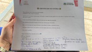 Detalhe do certificado entregue a famílio a da paciente