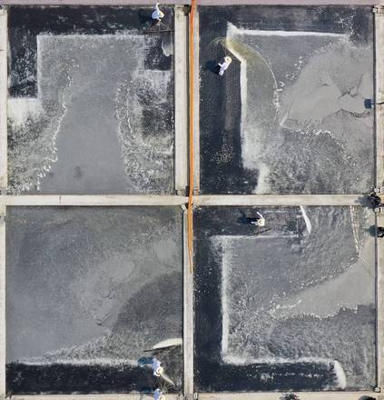 Trabalhadores colhem sal na cidade de Incheon, na Coreia do Sul