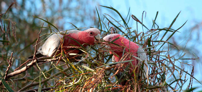 Na foto, um casal de cacatuas Galah, espécie encontrada na Austrália