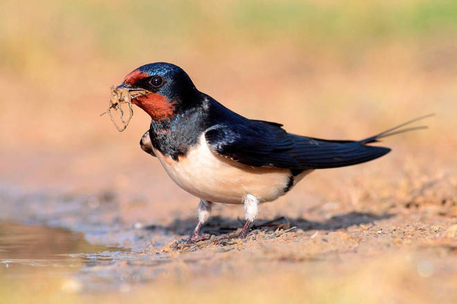 A andorinha-das-chaminés, também conhecida como andorinha-de-bando ou andorinha-de-pescoço-vermelho no Brasil, costuma voar em bandos
