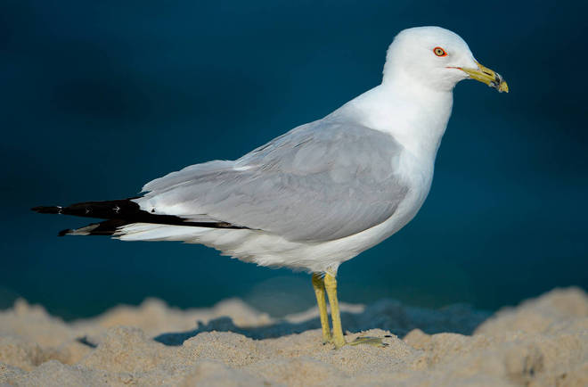 A gaivota-de-bico-riscado ou gaivota-do-delaware mede de 43 a 54 centímetros