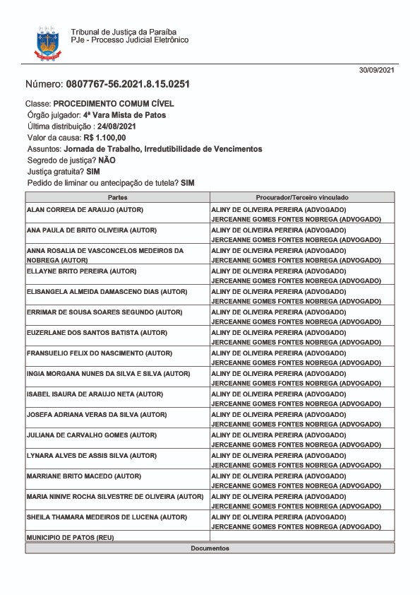 É importante mencionar que alguns servidores da categoria, por meio da SINFEMP, já haviam feito pedido igual anteriormente sendo negado pelo Juízo da 5ª vara Mista da Comarca de Patos/PB, entendendo na sentença que: "considerando que o Município de Patos está envolvido na missão global de enfrentamento à crise sanitária decorrente pandemia do Covid-19, compreendo que a fixação de carga-horária superior a 30 horas semanais encontra amparo no artigo 1º, parte final, da Lei Municipal nº. 4.589/2016."