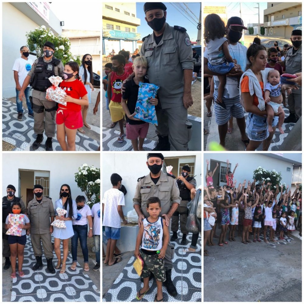 Desta forma, com ações humanitárias que visam o bem do próximo, a Polícia Militar vem de forma inclusiva, solidária e altruísta contemplar famílias de baixa renda que não tiveram condições de agraciar seus pequeninos por ocasião das comemorações alusivas ao seu dia.