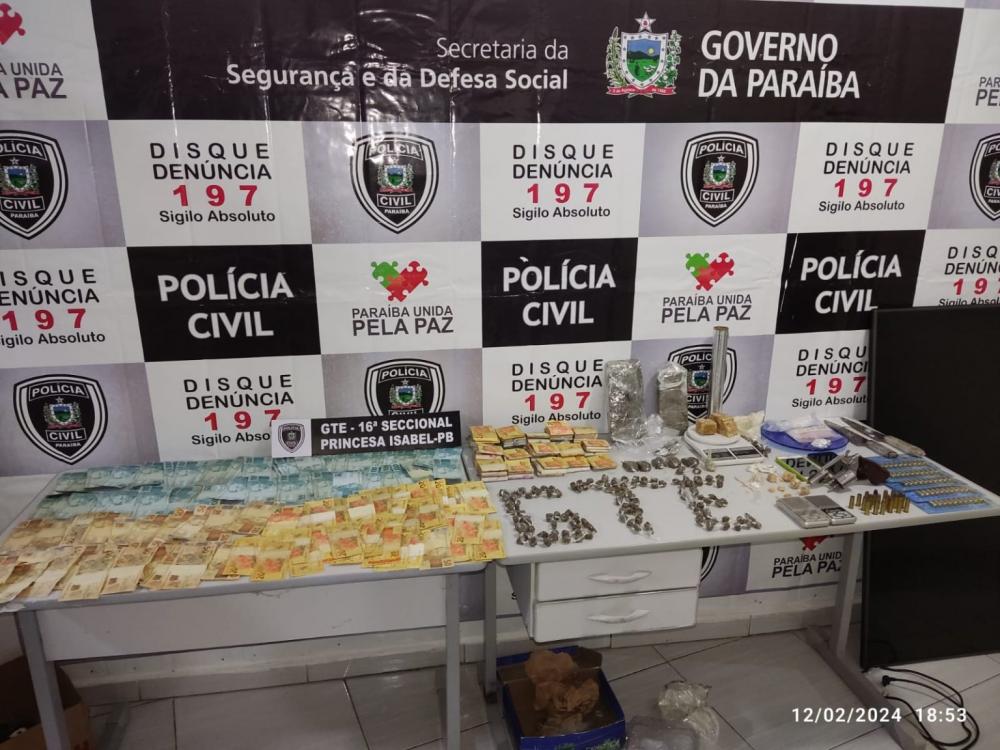 INVESTIGAÇÃO: Polícia Civil prende três suspeitos de tráfico e apreende arma e drogas em Princesa Isabel