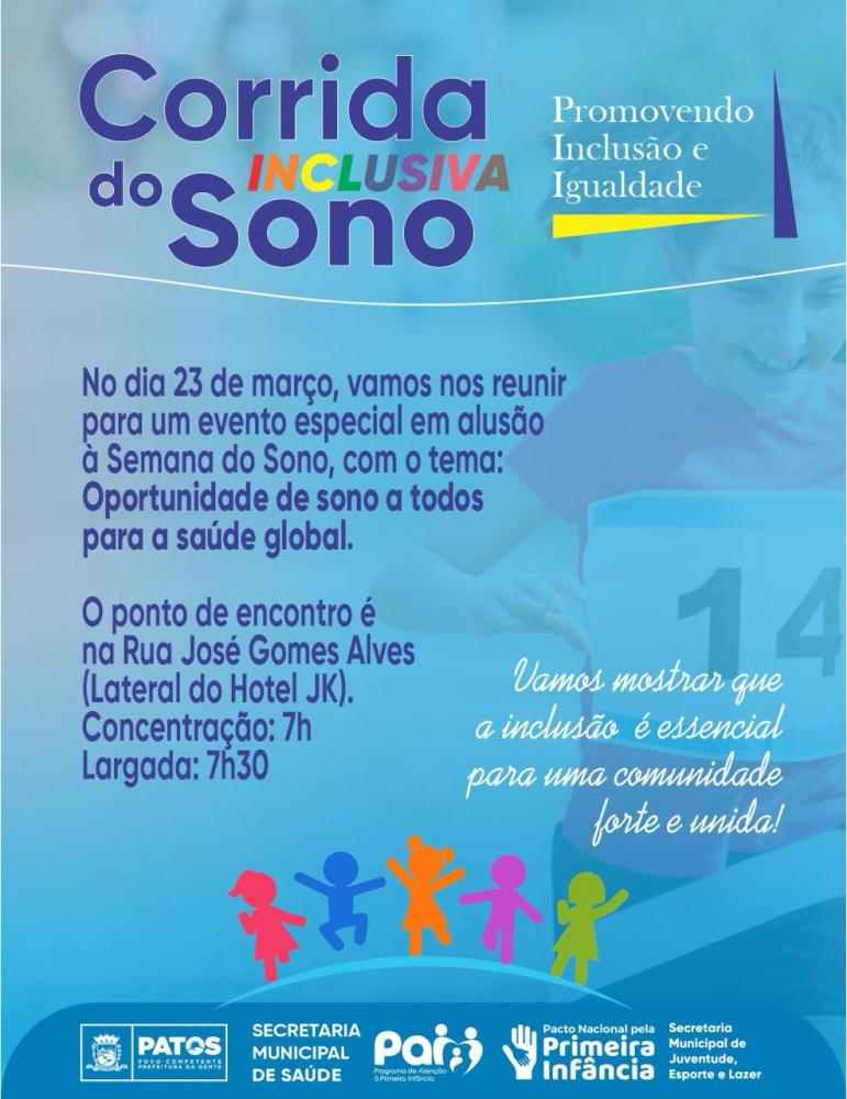 Próximo sábado (23): Crianças participam da Corrida Inclusiva do Sono em Patos