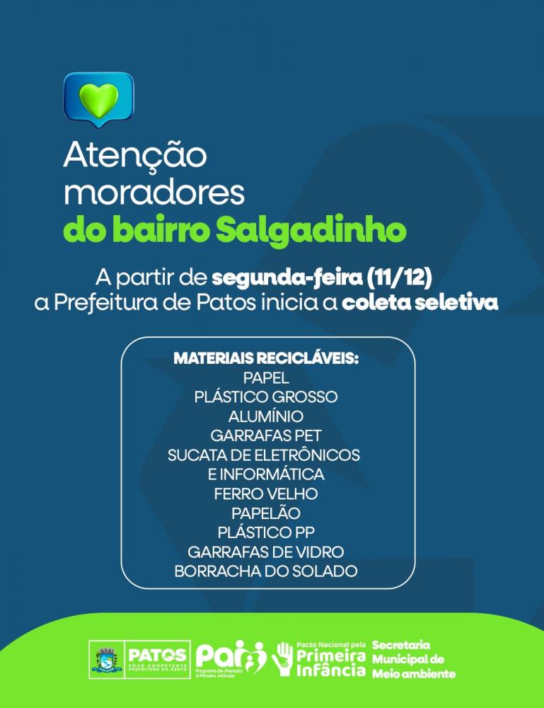 Prefeitura de Patos iniciou nesta segunda-feira a coleta seletiva no bairro Salgadinho