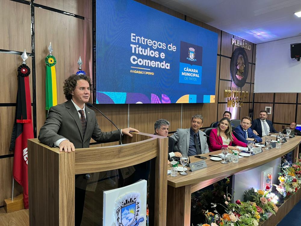 Veneziano recebe título de cidadania de Patos e reafirma compromisso com desenvolvimento da cidade