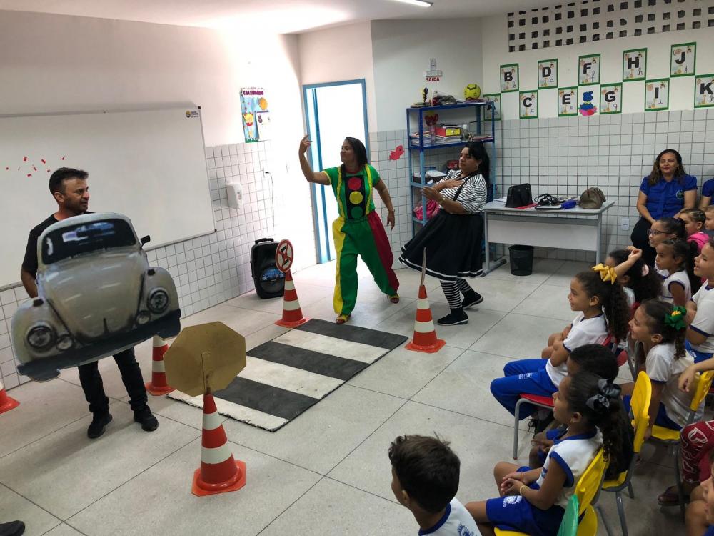 As atividades foram do Projeto Alfabetizando para o Trânsito, com a apresentação de uma peça teatral lúdica e interativa com alunos do 1o e 2o ano.