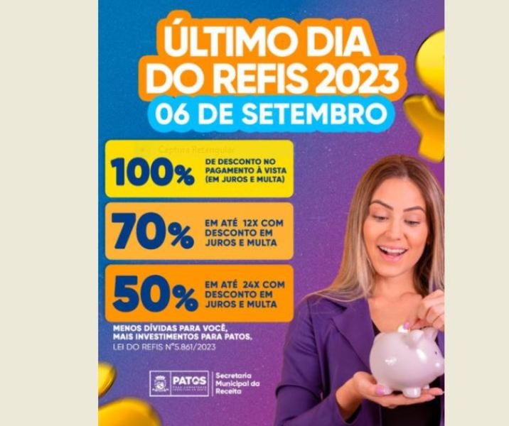 ERRATA: Calendário do Refis 2023 da Prefeitura de Patos vai até o dia 06 de setembro