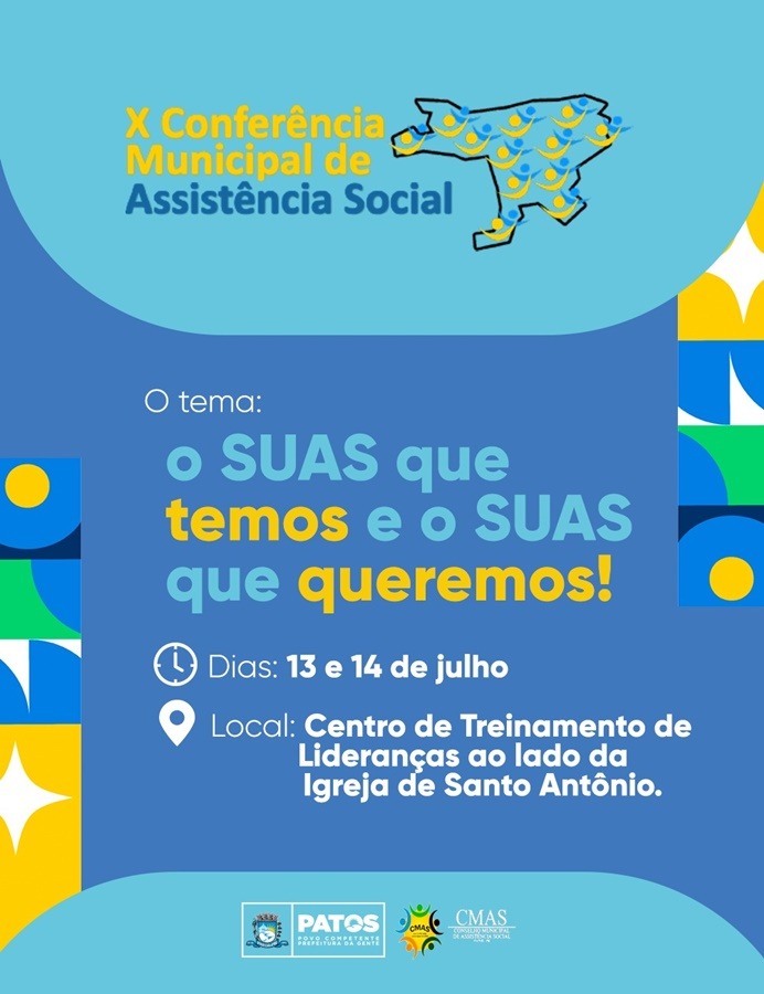 Patos realiza a X Conferência Municipal de Assistência Social nos dias 13 e 14 de julho