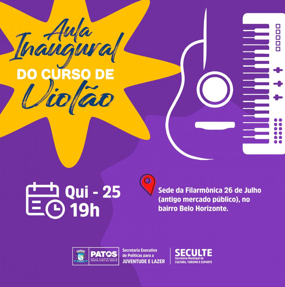 Aula inaugural do curso gratuito de violão da Prefeitura de Patos acontece nesta quinta-feira, dia 25