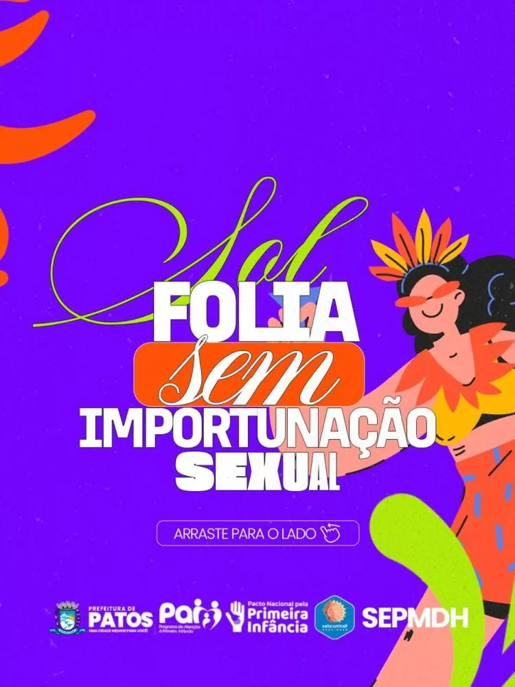Campanha “Pule, Brinque e Cuide” reforça proteção de crianças e adolescentes durante o Sol Folia, em Patos