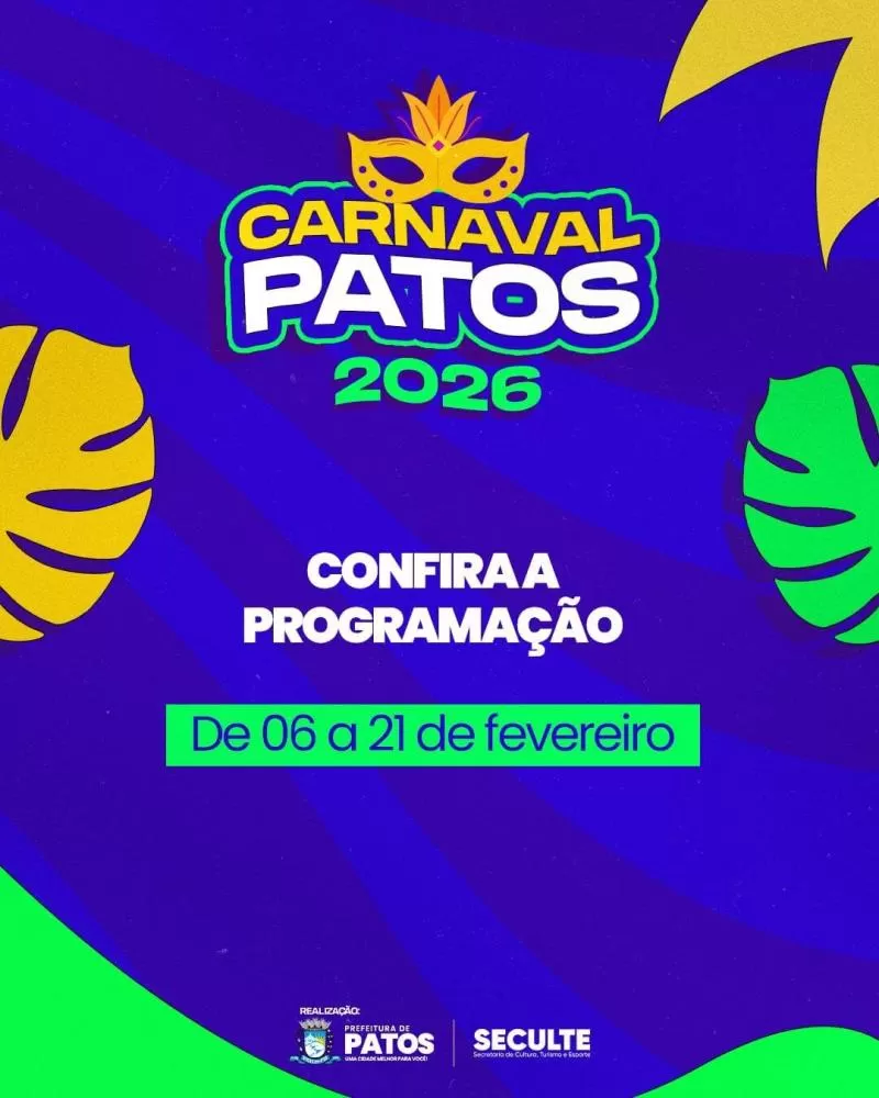 Prefeitura de Patos e Liga dos Blocos anunciam programação do Carnaval de Patos 2026. Confira!