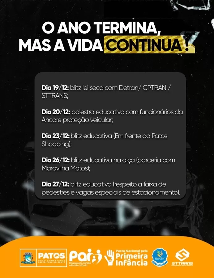 O ano termina, mas a vida continua: Órgãos de trânsito realizam operação Lei Seca em Patos
