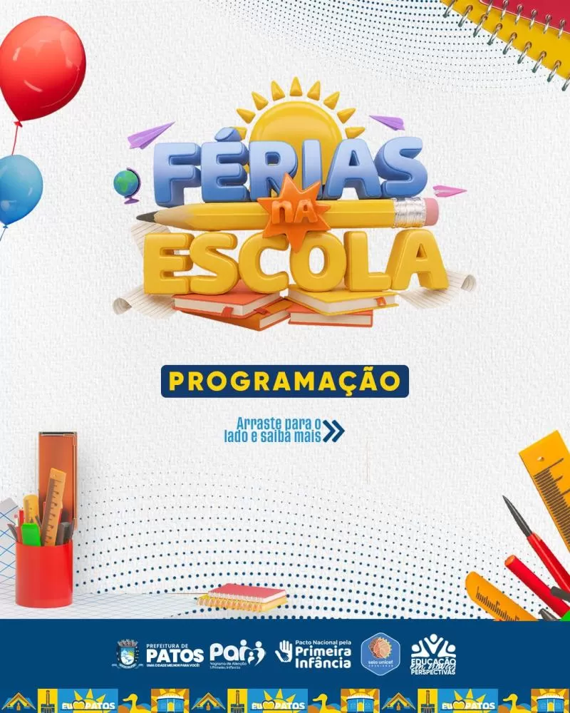 Projeto Férias na Escola tem início nesta segunda-feira na Rede Municipal de Educação de Patos