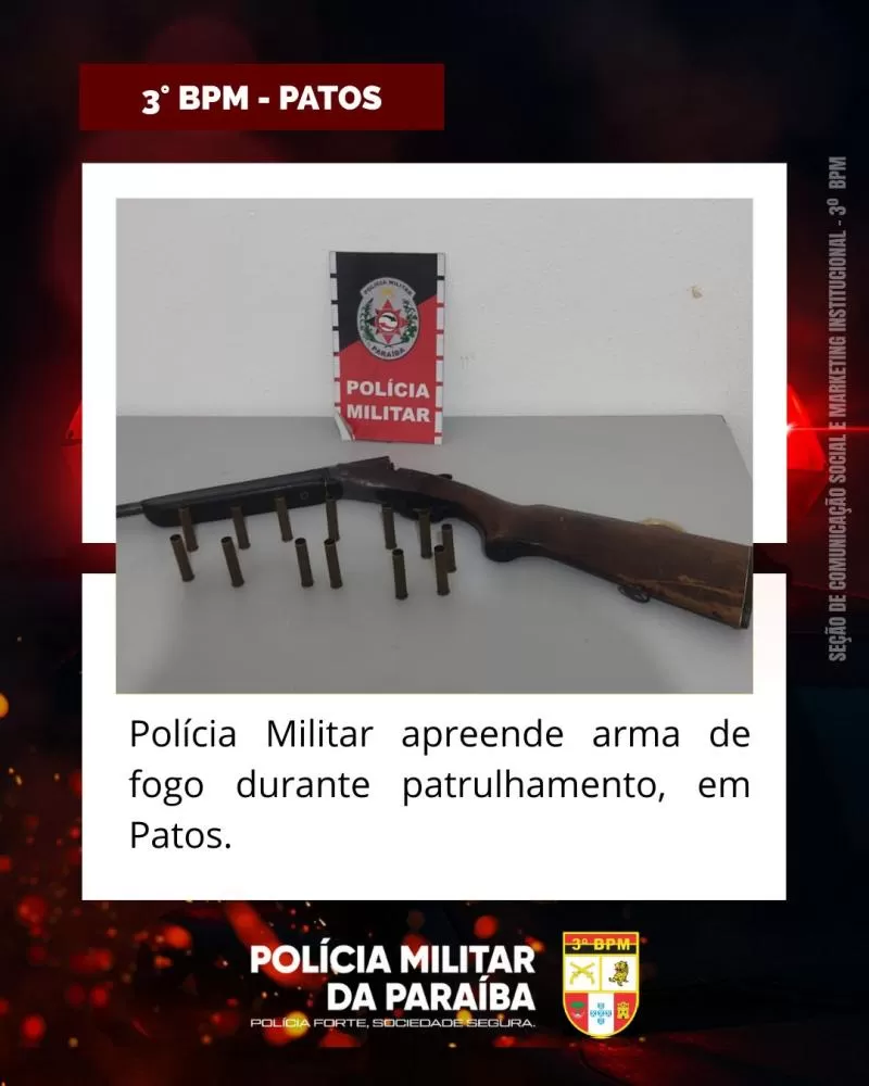 Polícia Militar apreende arma de fogo duarnte patrulhamento, em Patos