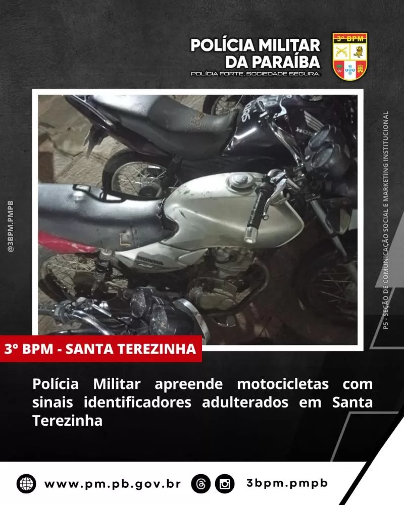 Polícia Militar apreende motocicletas com sinais identificadores adulterados em Santa Terezinha