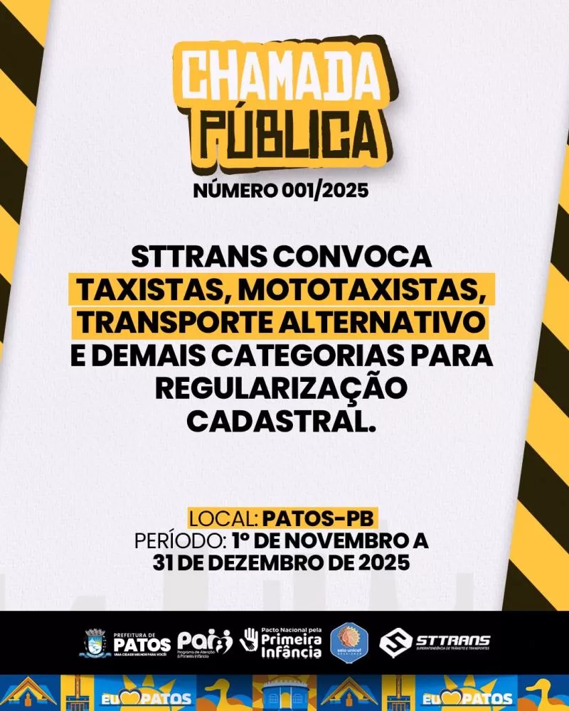 STTRANS realiza Chamada Pública para renovação de alvarás de táxi, mototaxi e outros transportes em Patos