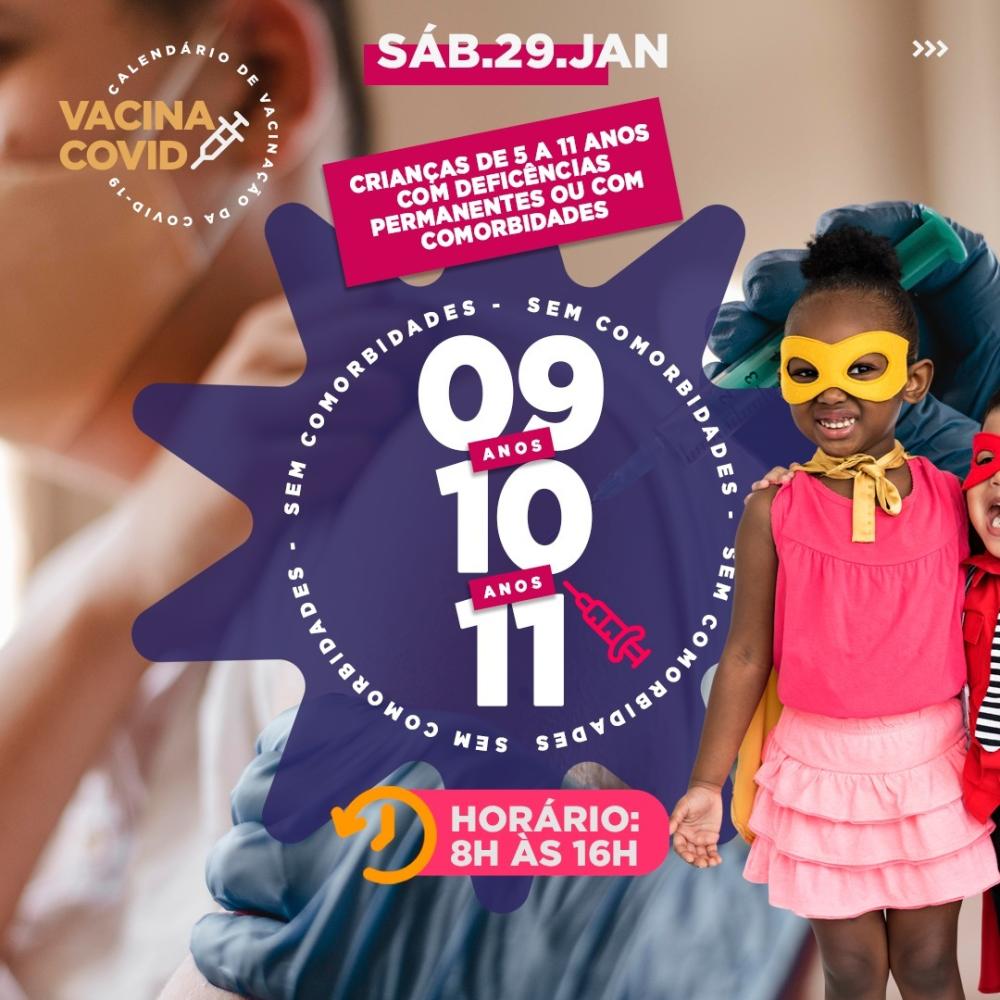 Dia D de vacinação contra covid para crianças acontece neste sábado (29), incluindo crianças de 9, 10 e 11 anos sem comorbidades
