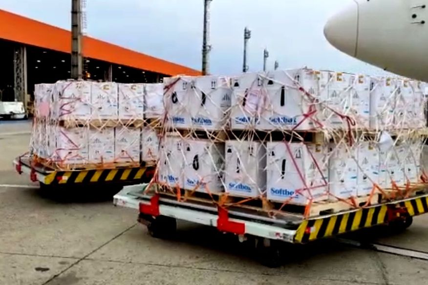 As duas remessas chegam pelo Aeroporto de Viracopos, em Campinas, e completam o cronograma de cinco entregas na semana. Os lotes são 56º e o 57º