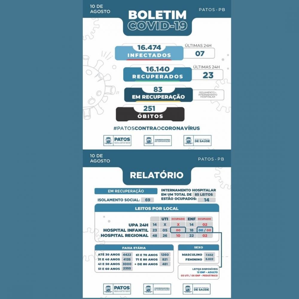 07 pessoas testaram positivo para COVID-19 nas últimas 24 horas em Patos