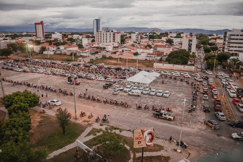 A imunização contra a Covid-19 aconteceu nos 4 pontos descentralizados, e principalmente no período noturno, durante o Drive-thru no Terreiro do Forró, das 17h até meia noite e meia.