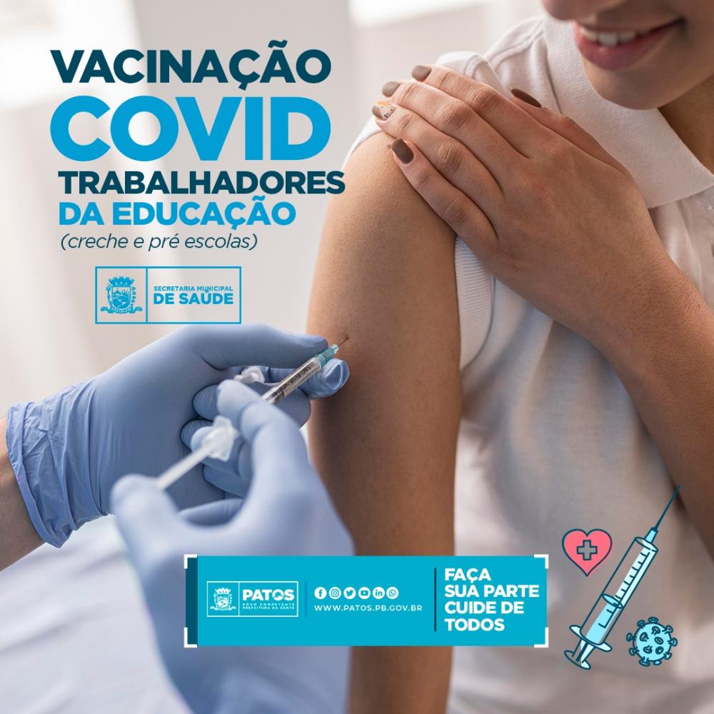 Trabalhadores da Educação de creches e pré-escolas começam a ser imunizados na cidade de Patos