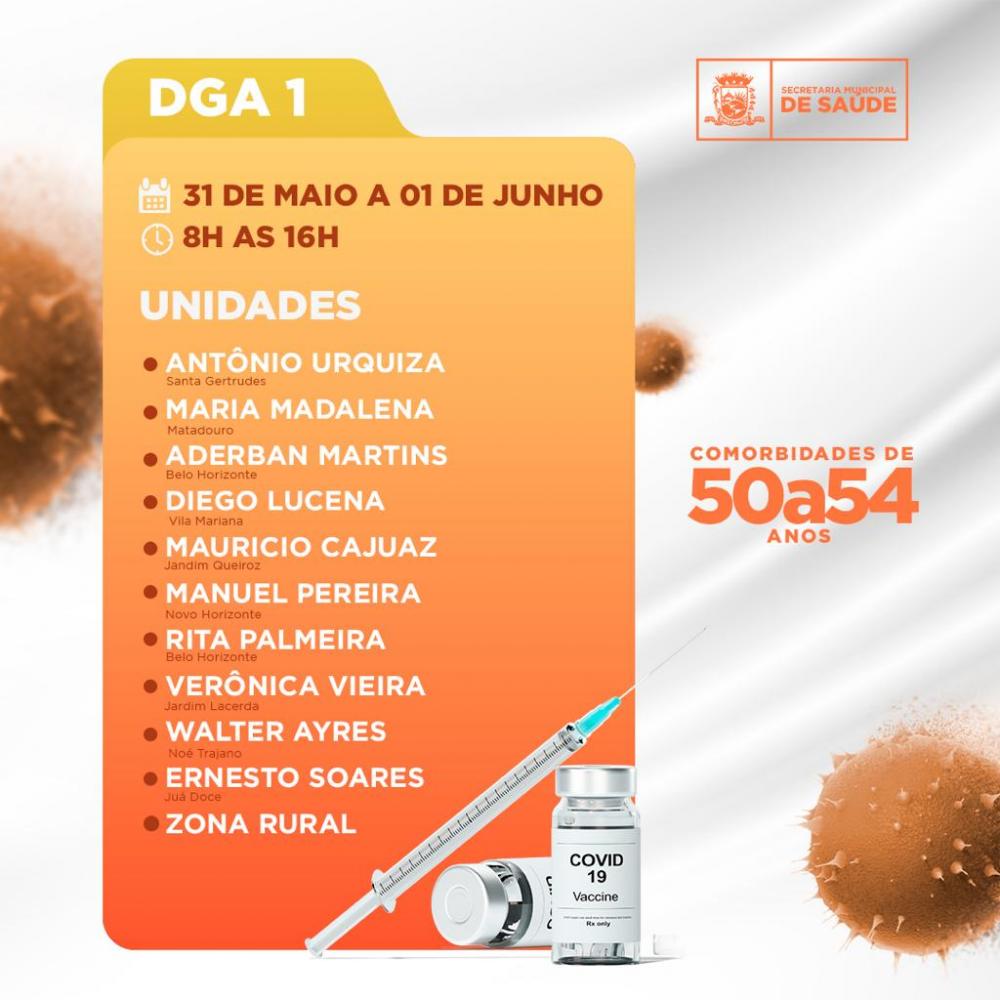 Pessoas de 50 a 54 anos serão vacinadas nesta sexta e sábado nas unidades do DGA 4. Confira também as datas do DGA 1