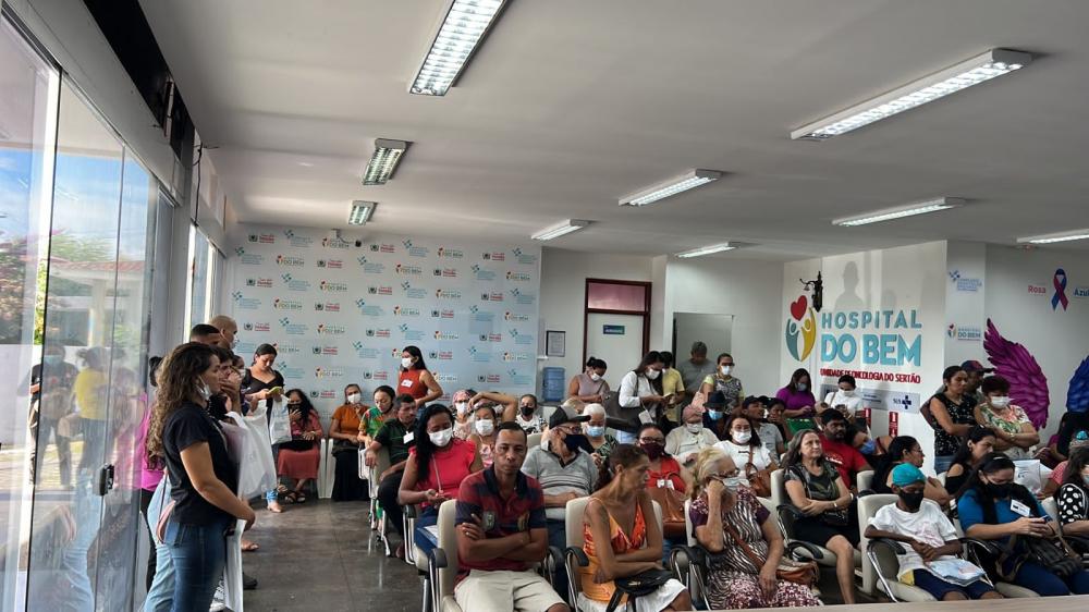 O momento, que aconteceu na recepção do hospital, teve distribuição de brindes, sessão de maquiagem, falas, música com voz e violão