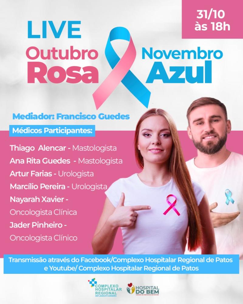 Complexo de Patos reforça importância do Outubro Rosa e Novembro Azul em uma live com médicos no próximo dia 31