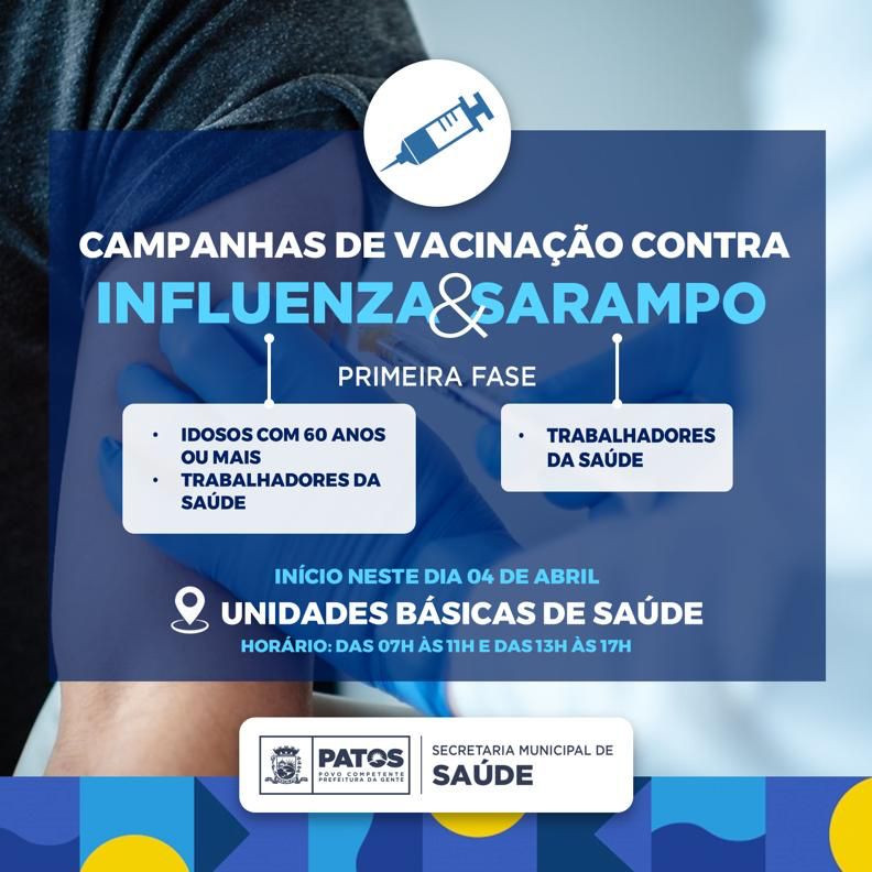Campanhas de vacinação contra influenza e contra o sarampo começam nesta segunda-feira (04)